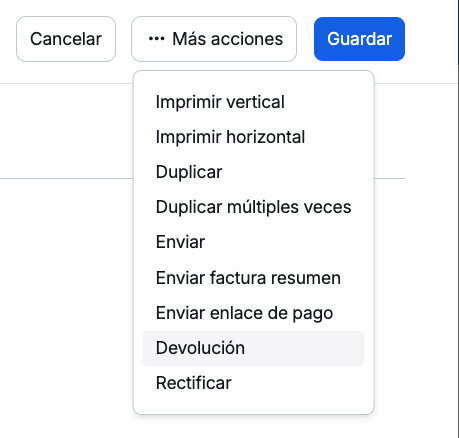 - Una vez dentro, en la parte superior derecha haz clic en ··· Más acciones > Devolución: