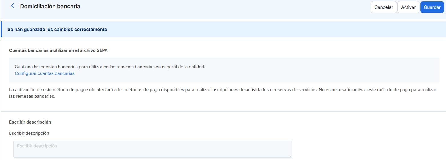 - Puedes añadir una descripción que se mostrará a los usuarios cuando tengan que realizar un pago online.