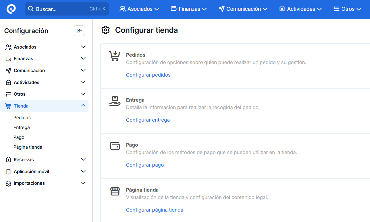 El módulo de tienda online en tu sistema permite que tanto los asociados como las personas externas a la entidad puedan realizar pedidos de productos de manera eficiente. A continuación, te explicamos cómo configurar los distintos aspectos de la tienda, gestionar productos y pedidos, y realizar otras operaciones clave.